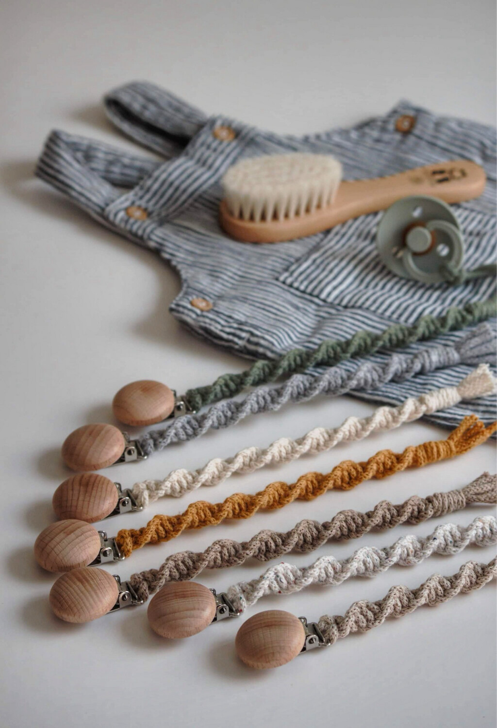 Κατασκευασμένα με φυσικά υλικά και με το μοναδικό στυλ που χαρίζει ένα μακραμέ, τα κλιπ πιπίλας θα σας βοηθήσουν να έχετε την πιπίλα ή το παιχνίδι κοντά στο μωράκι σας κάθε στιγμή!